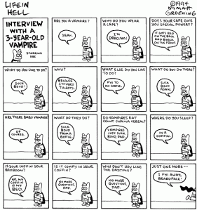 Actually, there is a comic strip that is printed in the New Times called Life In Hell, and I have loved said comic strip for many years, before the Simpsons hit television. Not sure if he’s still doing it, but then I haven’t picked up a New Times in a while.
