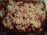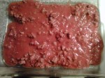 Next, preheat the oven to 350 degrees. Brown the ground hamburger. I like to add spices to the hamburger as it’s browning: garlic powder, onion powder and Italian seasonings, but remember that you’ve used these in the sauce as well so don’t go overboard on spices or it’ll turn out to be a vampire’s worst nightmare.