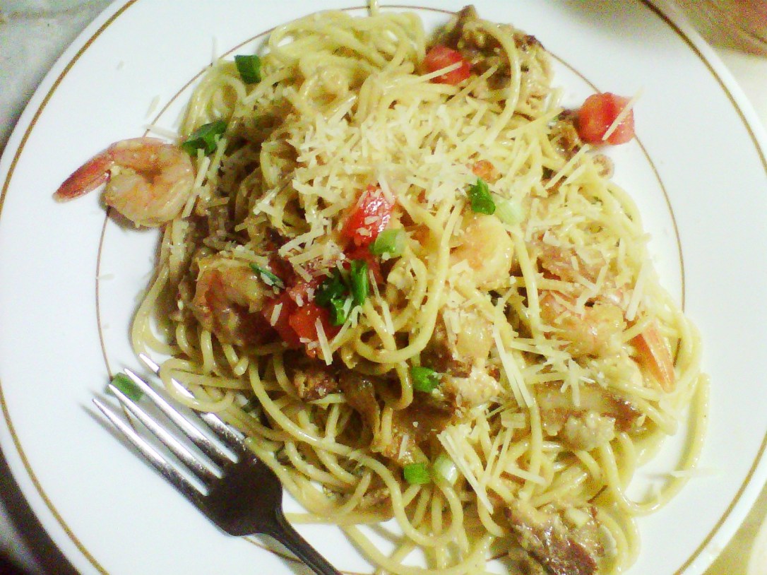 The beauty of this dish, is that you can customize it however you’d like, once you’re comfortable with making the sauce. One of my favorite ways to do it is to dice a boneless, skinless chicken breast, and add some fresh spinach. For G’s birthday Carbonara, I added scallops, shrimp and crab, white wine, broccoli and extra red pepper flakes.