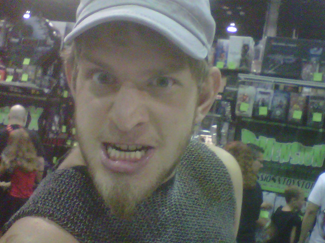 Sunday, I was mostly walking around barefoot. Though Sunday wasn’t as crazy as Saturday, where we almost had to take serious action because Juliette was bitten, we still had many people approach the booth and remained very busy. I’m certain exhaustion showed on all of our faces. I know I was dragging. Then, this guy showed up…