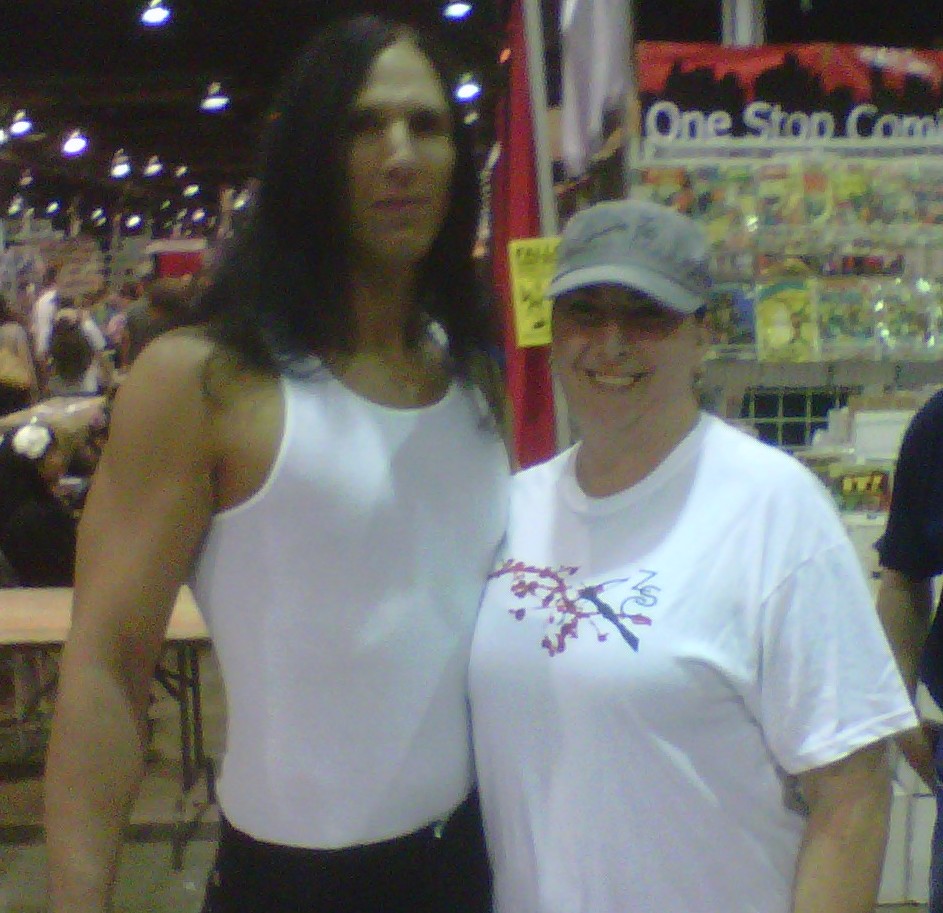 …and holy crap, was he ever tall. He makes ME look really short! Paul (guy making mean face to the right) is 6’6″, and this guy (I cannot remember his name to save my life, but I think it was Dave – four days of meeting people is not good for Jinxie’s memory) was probably three inches taller than Paul, who said, “Jinxie, why don’t you get your picture taken with this tall drink of water.” *smh* Yes, I stuttered and stammered and felt like an idiot when he walked away, and I’m hoping he’s not reading this blog right now because I’ll feel even more like an idiot.