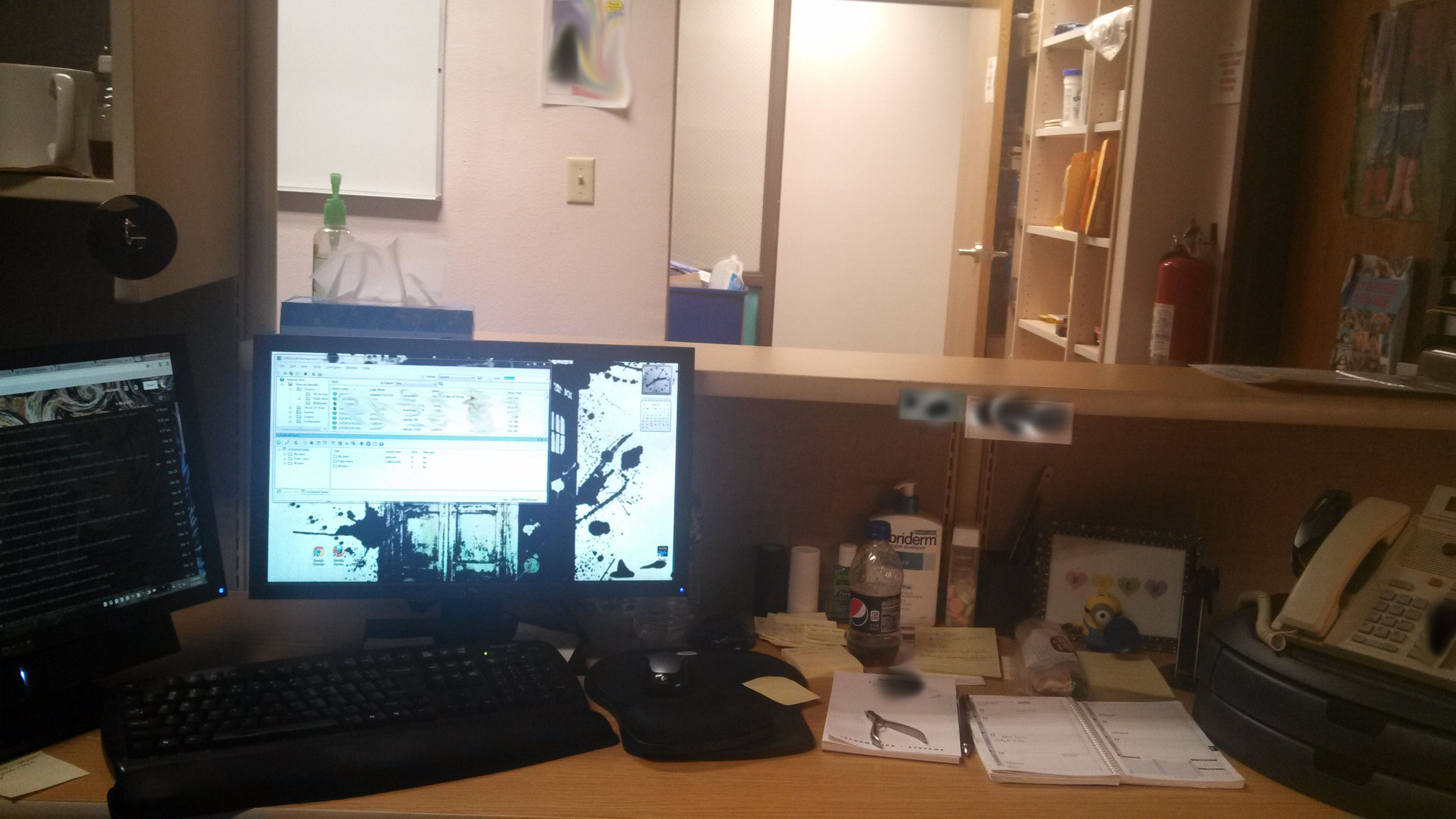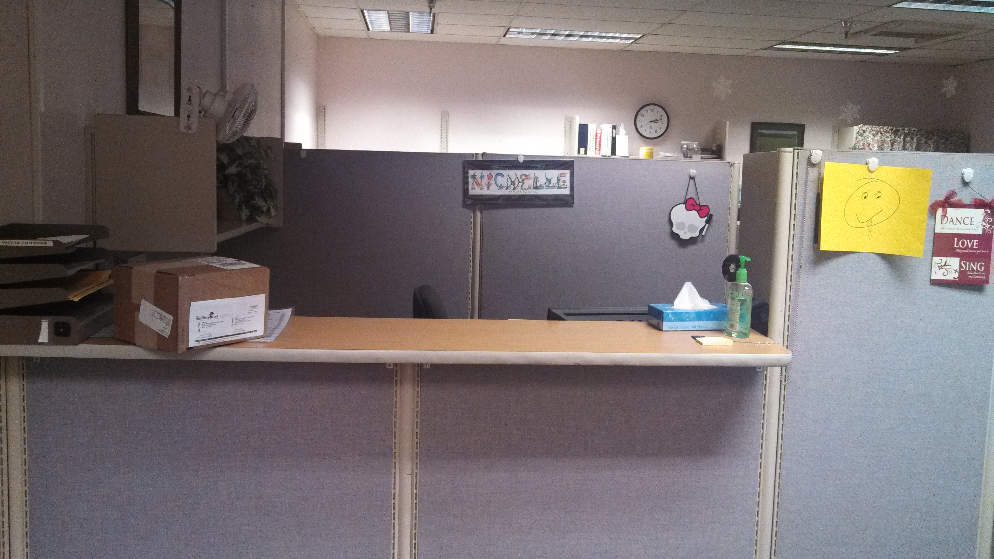 You see the ginormous opening that basically states to all who pass, “Here I am; talk to me!” Yeah, that’s why I’m not smiling. Doesn’t matter though; they still stop and talk. At least it’s not as bad as I thought it would be, and I’ve become the building secretary now while ours is on maternity leave simply for the fact that there’s a sign that tells incoming folk to go to the help desk, and when they get there I’m the first person they see. It’s been oh so fun directing people where they need to go while I’m on a call.