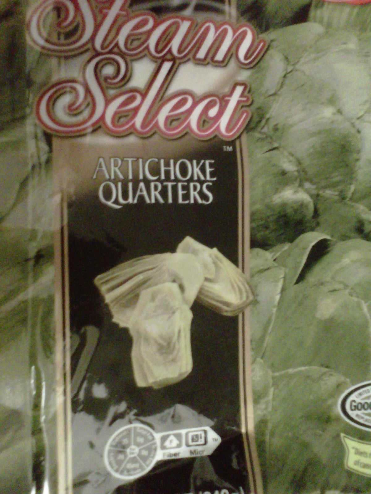 1 pkg. frozen artichoke hearts/quarters (trust me, the jarred/canned kind doesn’t work for this – *gag*)