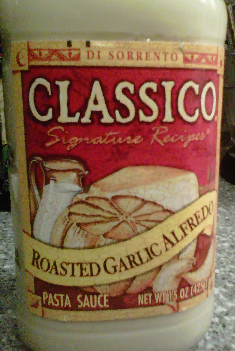 1 jar Alfredo sauce (I use the roasted garlic kind, but hell, you could even make your own for this)