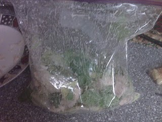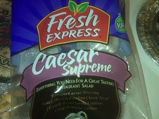 Open the salad kit and take out the little bag inside, then dump the greens into a gallon-size ziploc bag. Place as much chicken as you want inside the ziploc bag as well. Open the dressing packet and pour it in the bag, as well as the cheese. Seal the bag and shake the hell out of it to mix everything up. Reopen the bag and add the croûtons, then seal and shake again.
