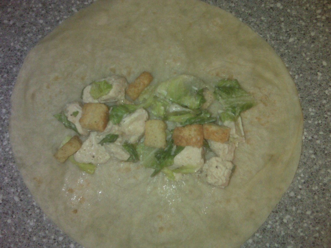 Viola! You have a chicken Caesar salad wrap. Mmmmm!