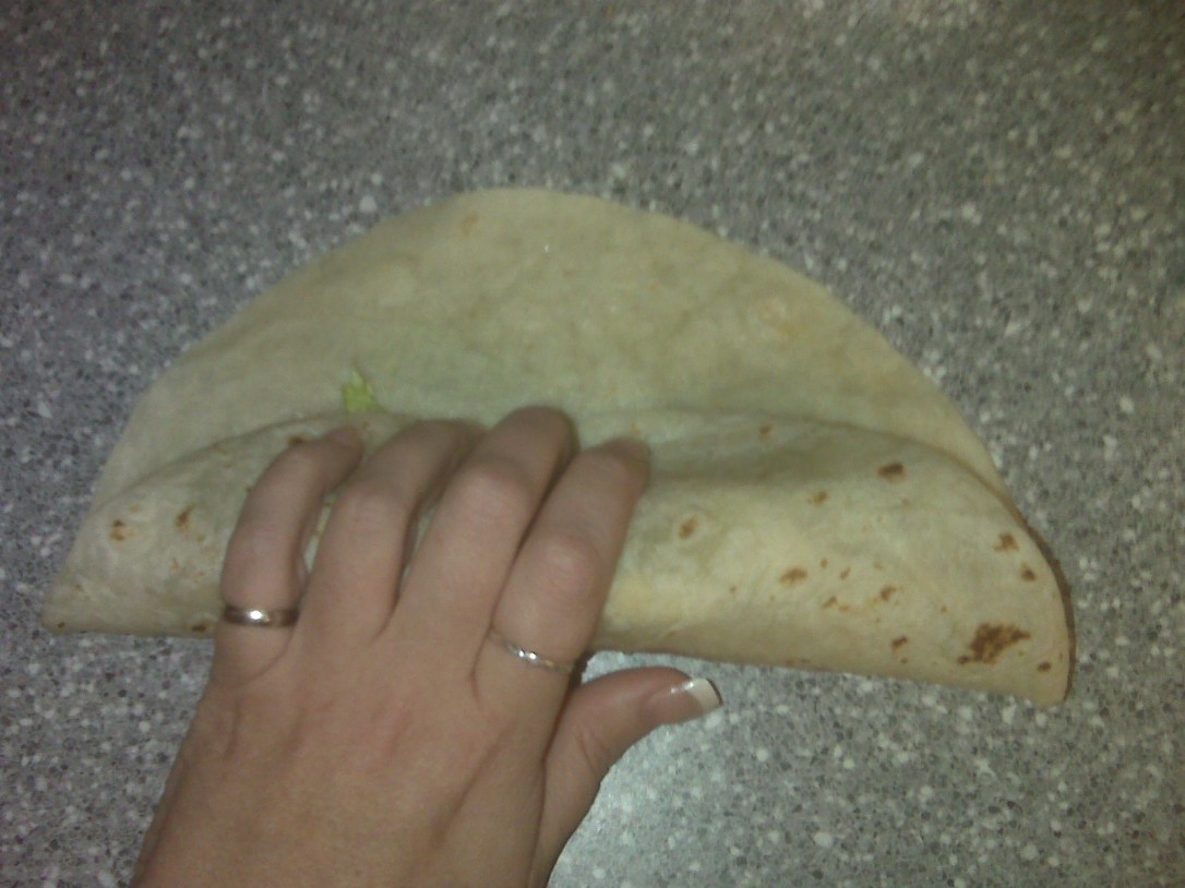 Then roll the tortilla a bit, fold the ends in, and roll again.